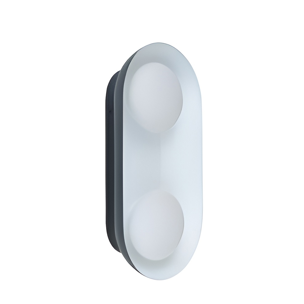 A modern wall sconce featuring a matte black and signal white metal frame with two frosted white acrylic shades that provide soft, balanced illumination. Ideal for hallways, bathrooms, and accent walls, it delivers a clean contemporary look with integrated LED lighting.